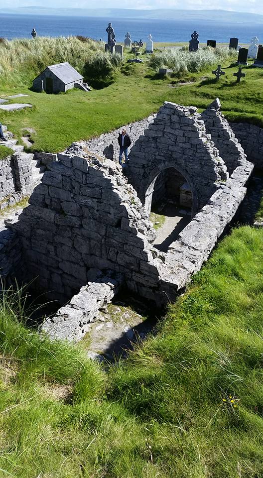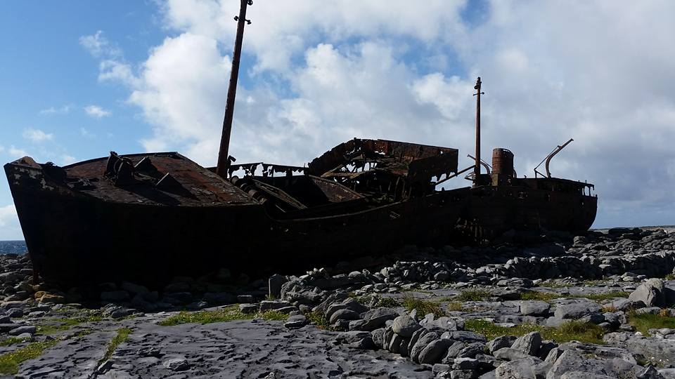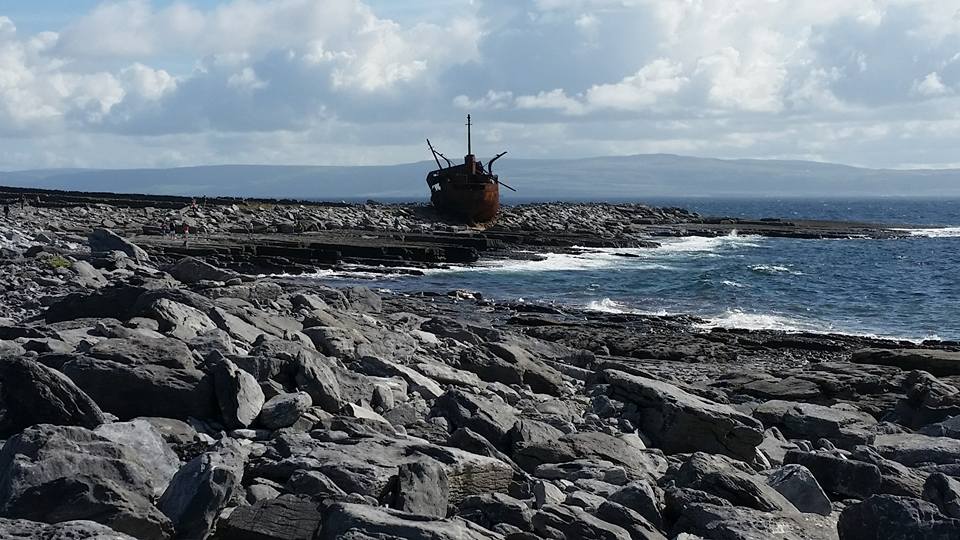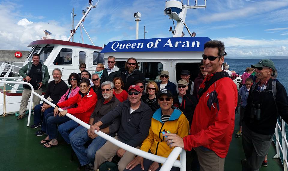 Day 9 of our tour was truly the icing on the cake. We boarded the Queen of Aran at the Doolin pier into the North Atlantic for a short ride across to Inisheer, the smallest of Aran Islands. Upon arrival Willy, Clay, Chris and I rented bikes to explore the island. We traveled the streets amongst the labyrinth of rock walls to reach the circa 1960s era shipwreck of the Plassey. After a few bike malfunctions including breaking a chain, we headed up to the highest point on the island, the ruins of O’Brien Castle where I even ran into some fine St. Louis folks. On our decent we stopped by Saint Caomhan’s church, also known as Sunken Church which has been buried in sand. St. Caomhan’s grave is also on site. Finally, with an hour left on the island, we decided to head cross island to the lighthouse. It was a wonderful ride, but boy am I out of shape. We once again boarded the Queen of Aran for our return, but the captain took us by way of the Cliffs of Moher for a spectacular view of these majestic cliffs from an angle that many people don’t get. What a wonderful way to spend a sunny Irish day. We finished the night with a group dinner, a set and some education from a fabulous young artist, Tara Howley, some farewells and a few songs from Willy at Fitzpatrick’s before heading back to pack before our departures tomorrow. What a tour, with fun, humor and great new friendships. I’m off to Dublin for a couple of days on my own and will be meeting up with a couple of my new friends (Jerry & Liz) while I am there.