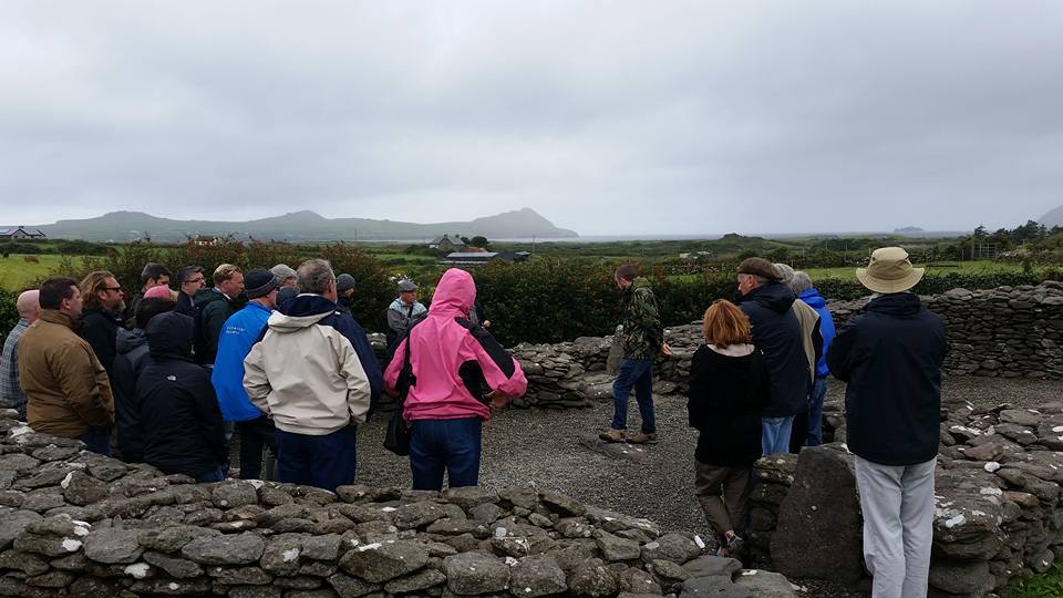 On day 4 of our journey through Ireland we moved our base from Skibbereen to Ballyferriter on the Dingle (yes, almost every joke has already been heard on the bus) Peninsula. Along the way we visited Molly Gallivan’s farm which is the only original traditional Irish settlement house and farm still in its original form. We sampled some of the poitin (traditional homemade whisky) while learning a bit about life on the farm. We then hopped the bus into Kenmare for lunch where we were enthralled by the incredible race walking coverage in the Olympics 😉. From there we headed through Killarney and into Ballyferriter with a quick stop at Inch Beach for some provisions and to catch a view of some kitesurfers (and a compact car disappearing into the surf poor souls). After a bite at the hotel bar we were treated to an incredible private concert by Gerry O’Beirne & Pauline Scanlon. Phew! Tomorrow we hit the halfway mark. Glass half full. Slainte!