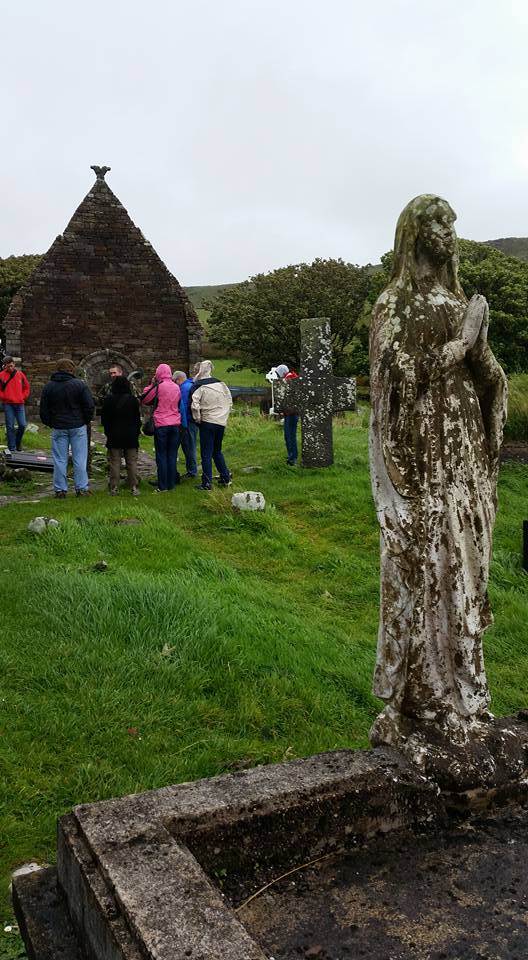 We’ve passed the halfway point on our trip on Day 5. Today we were able to visit a batch of historic sites dating from the 6th-12th centuries (Reask Monastic Site, Kilmalkedar, Gallarus Oratory and ring forts) with a fantastic guide in Billy. From there, we headed up to Slea Head where Jason was nearly blown off the cliff and Clay (aka. Jim Cantore) gave us a report on the weather. We finished our tour of the Dingle Peninsula with a visit to the Blasket Islands Centre to learn a bit about the islands. We finished the day with dinner in Dingle town followed by a concert at Siopa Ceoil featuring the rambunctious Seamus Begley. Now, off for a pint.