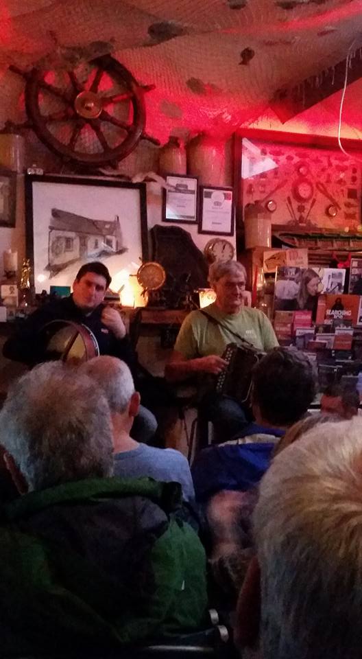 Day 6 of our Ireland trip was a quiet day. Left to our own plans for most of the day giving time for everyone to recharge before wrapping up our trip in Doolin. I hopped on the shuttle with a few of my new friends into Dingle for a soaking walk through town visiting a few shops along the way. After a thorough soaking I met up with Clay for a pint at Foxy John’s Bar, Hardware and Bicycles. After drying off, the group met at O’Sullivan’s Court House Pub for a rousing set from Tommy O’Sullivan and some guest artists including Willy. We finished the night with a group meal back in Ballyferriter and a short set by Willy. On to Doolin tomorrow!
